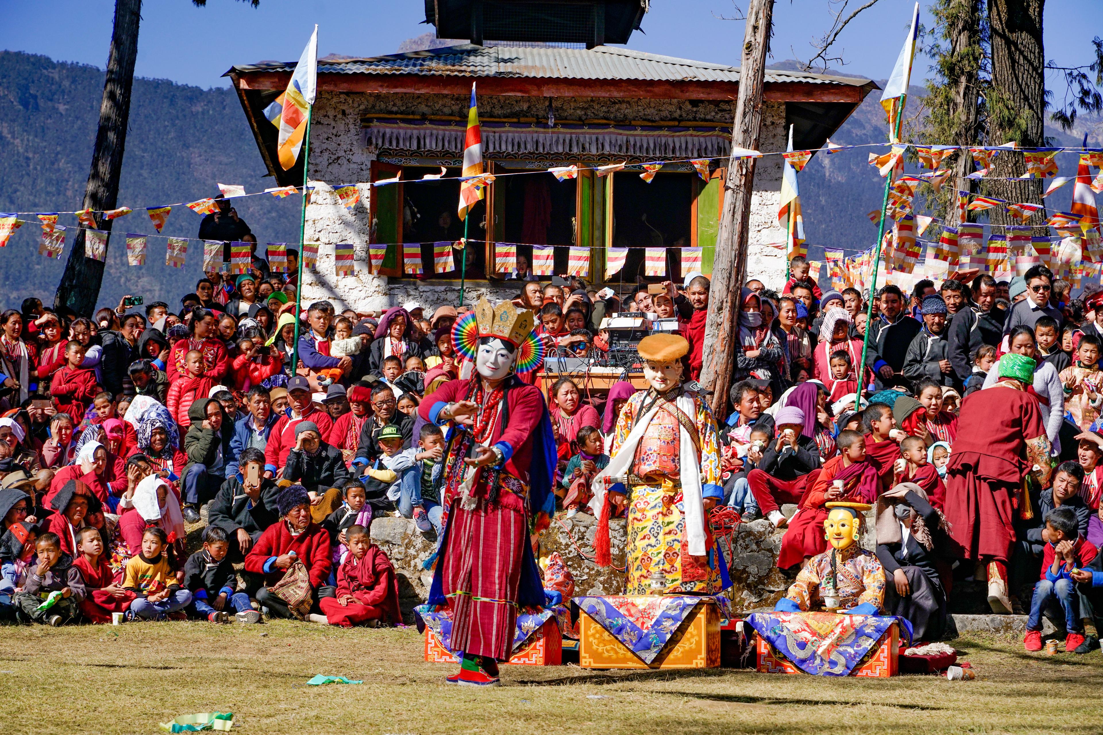 In January, the Torgya Festival bursts into color—masked dancers spinning, cymbals clashing, the air alive with rhythm and ritual.
